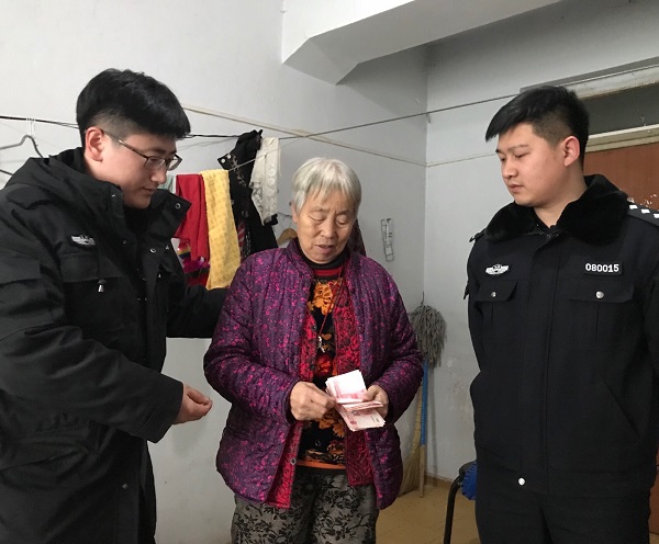 执行款到位后,考虑到左某年老体弱,于是执行干警便上门为其办理领款手续。当左某从执行干警手中接过赡养费时,左某露出了满意的笑容,双手握住执行干警的手,激动地对执行干警说:“感谢你们这么冷的天,不辞辛苦,还将钱送到了我这,真的要谢谢你们!