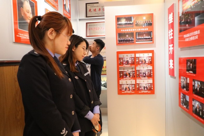 活动中,在院党组成员、副院长张海军的引领下,来访同志对法院扫黑除恶办公室、多功能刑事审判庭、诉讼服务中心、院史室等场所进行了参观,深入了解了拜泉法院扫黑除恶工作的进展情况以及相关举措。
