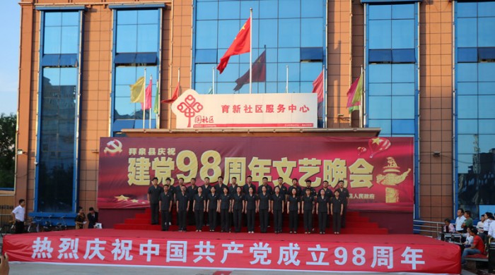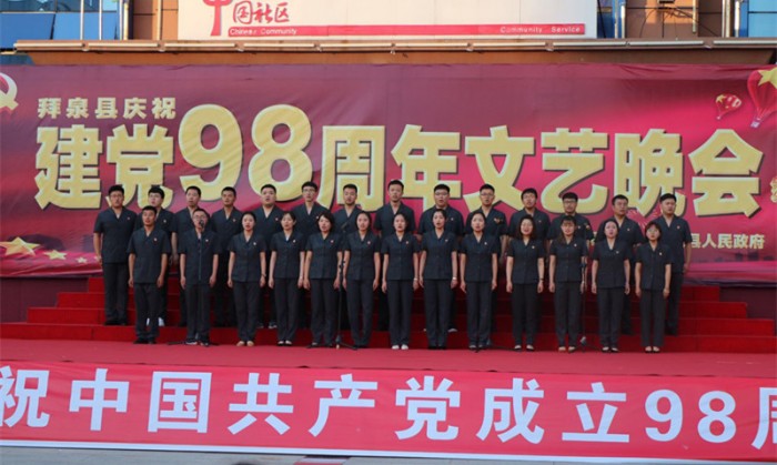 为庆祝中国共产党成立98周年,弘扬民族精神,7月1日,拜泉县人民法院青年干警参加了全县庆祝建党98周年文艺晚会,通过大合唱的方式集体回忆伟大的中国共产党带领各族人民走过的不平凡的历程。